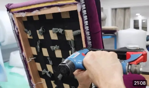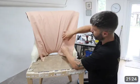 In this video you'll learn how to prep the inside back frame ready for deep buttoning. I'll show you what foams I like to use and how I layer them up to get the desired look.