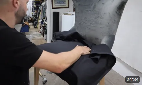 In this video we show you how to upholster an inside back with a significant curve after using a template to get the seams into the correct place.