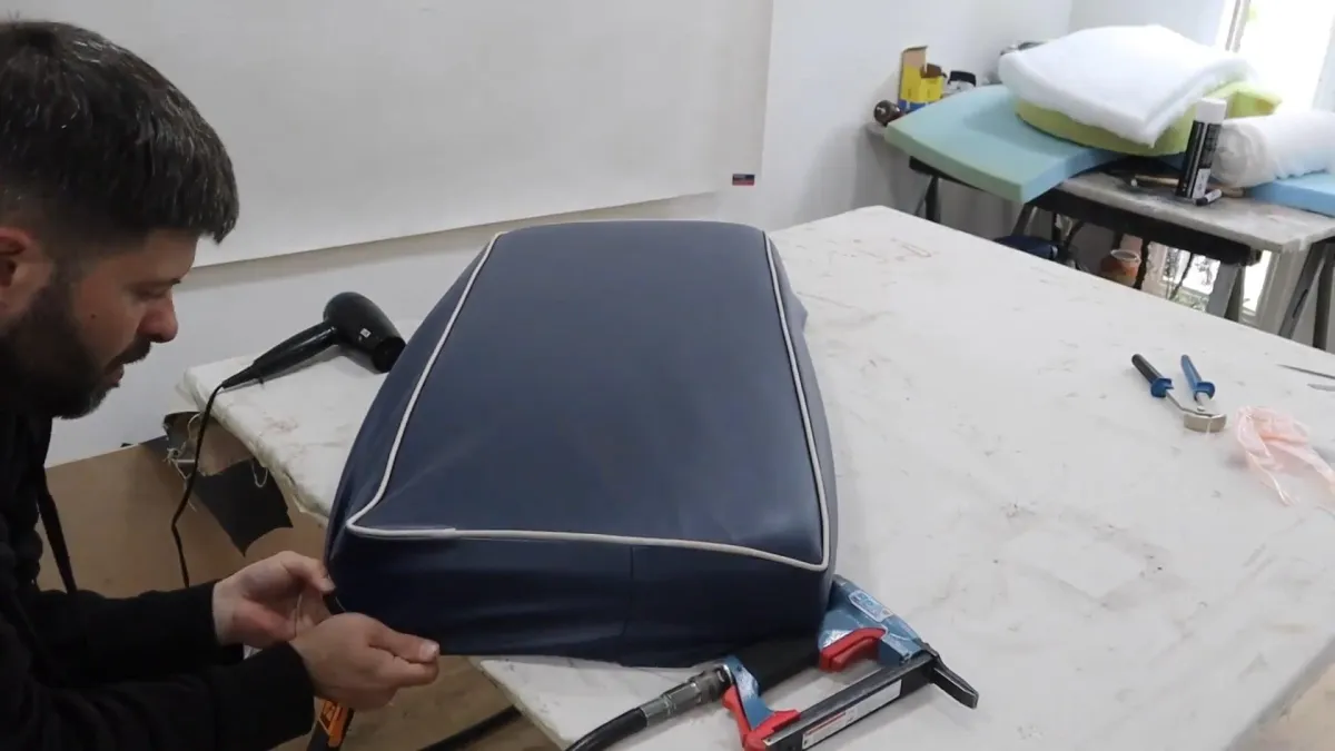 In this video, I’ll show you how to make and fix double piping to an upholstered foot stool.