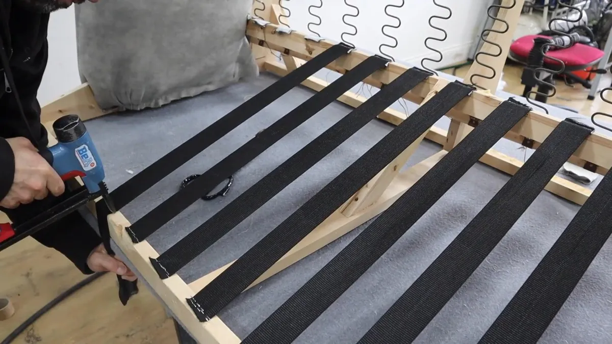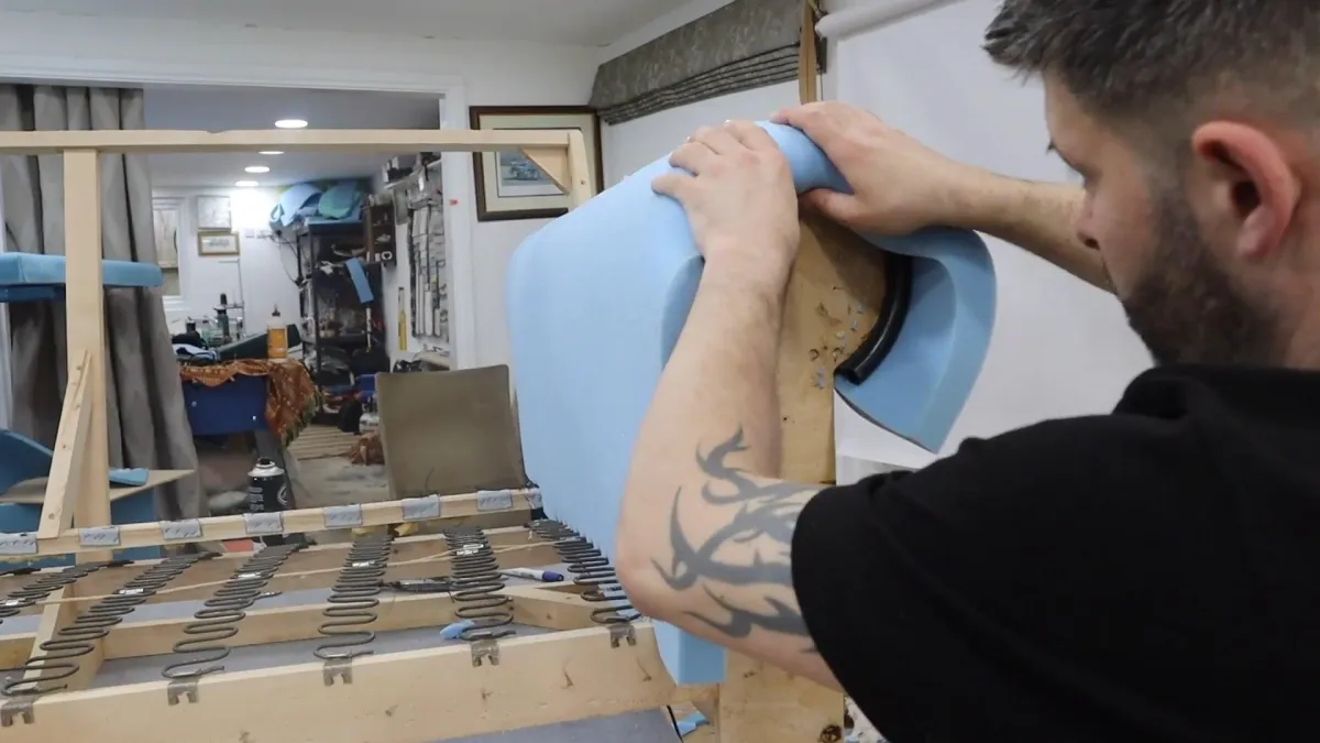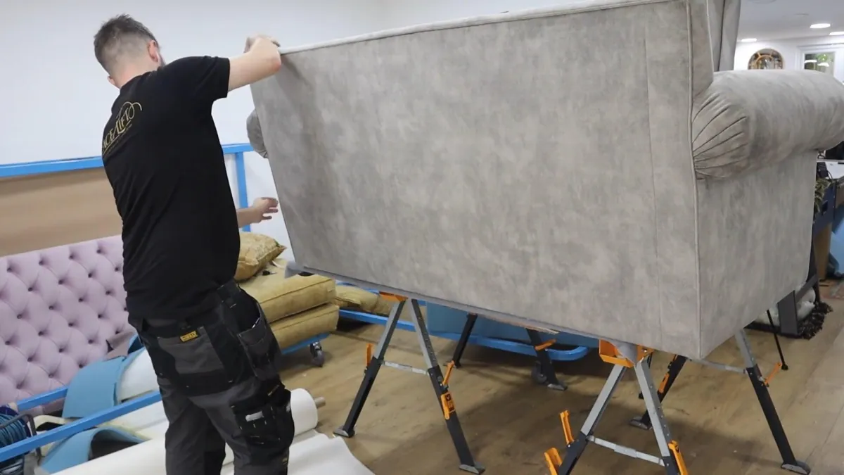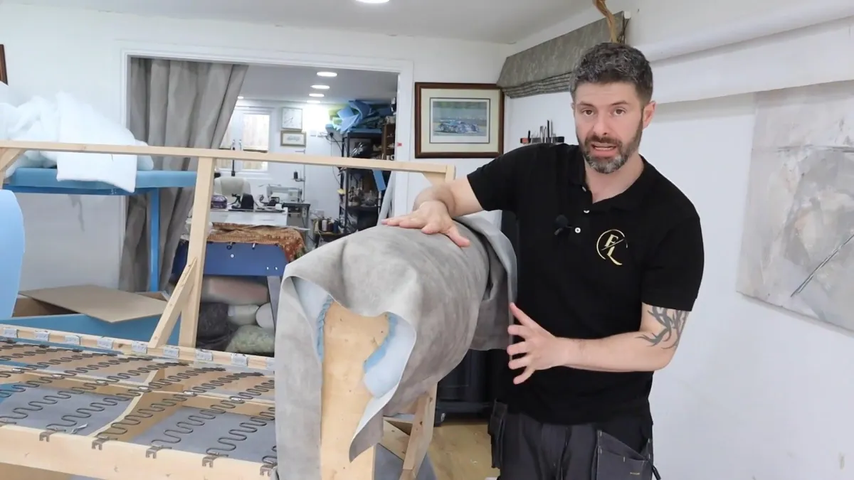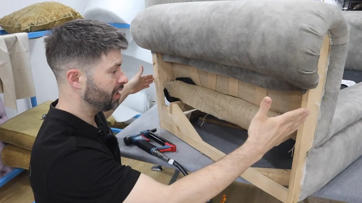 In this video you'll learn how to upholster the front border of a sofa whilst also learning how to correct the corners a lot of manufacturers cut on their frames.