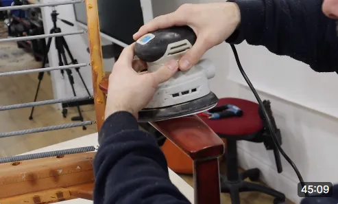 In this video, I'll show you how I sand the chair's woodwork down to its original state, preparing it for a rich, beautiful new stain.
