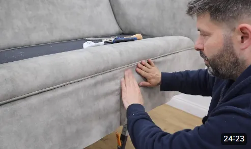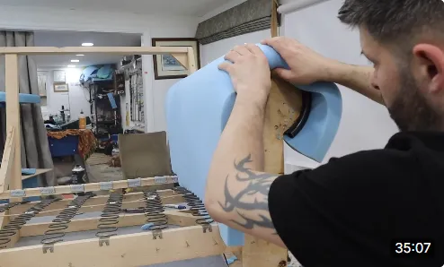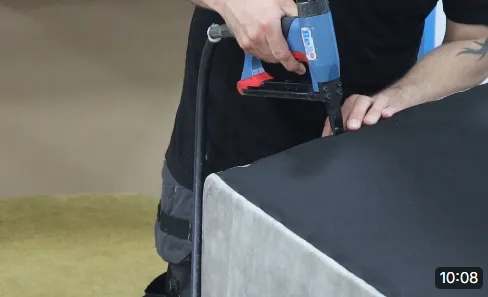 In this video you'll learn how to upholster the front border of a sofa whilst also learning how to correct the corners a lot of manufactures cut on their frames.