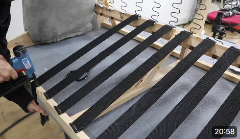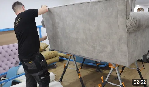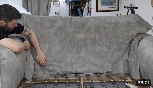 In this video we show you the techniques I use to put a bottom on a sofa to make sure it's ripple free.